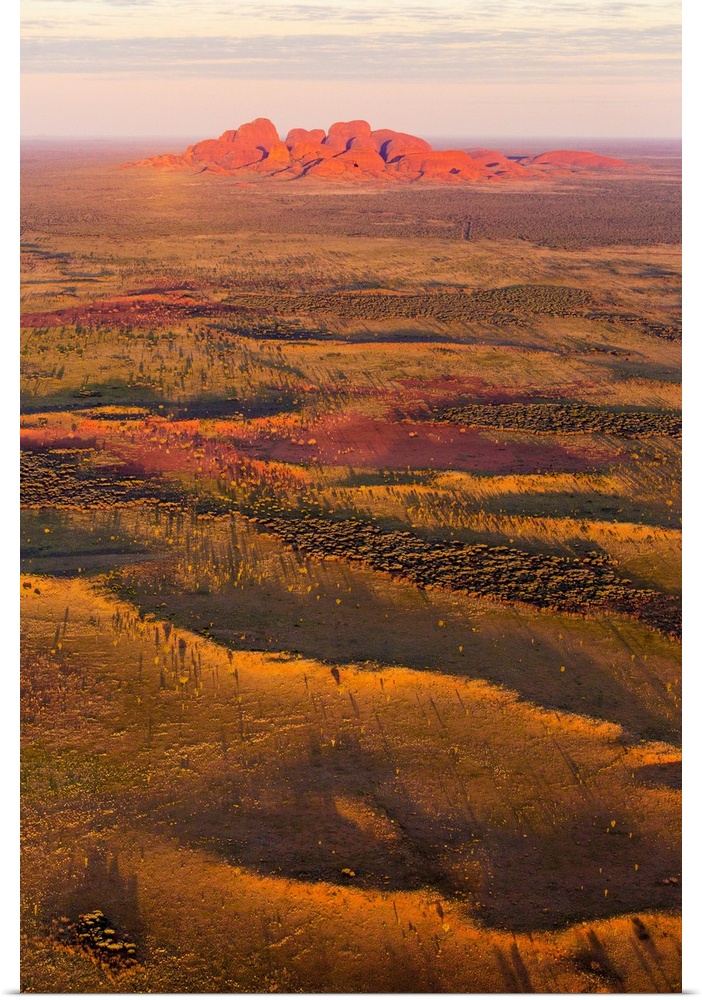 <p>Kata Tjuta at sunrise, Aerial View, Red Center. Northern Territory, Australia.</p>