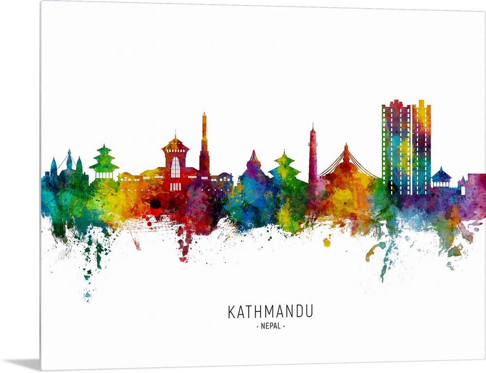 <p>Watercolor art print of the skyline of Kathmandu, Nepal</p>