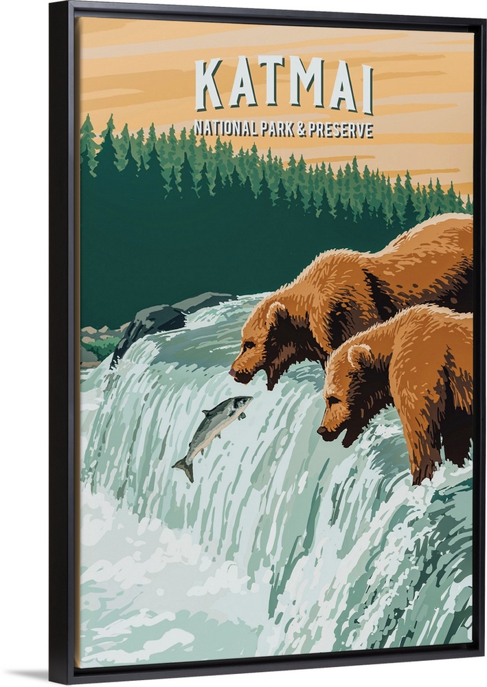 Art Landscapes River, Creek and Stream Waterfall Lantern Press United States Alaska Wildlife Bear