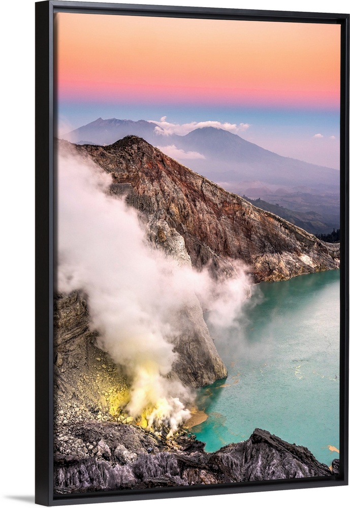 <p>Kawah Ijen volcano and crater lake at sunrise, Java, Indonesia.</p>