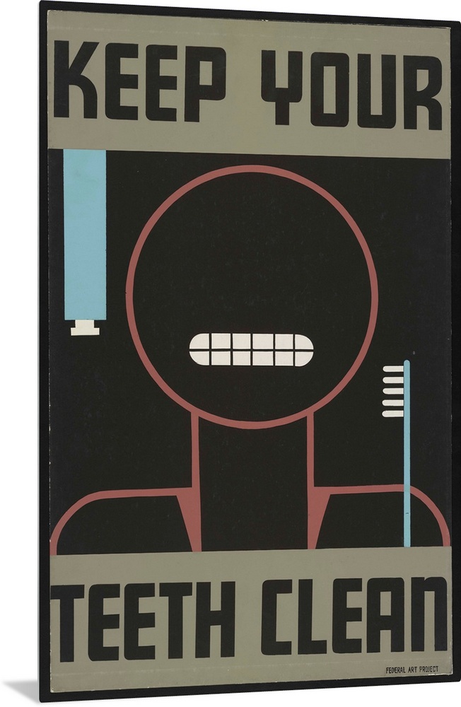 <p>Artwork promoting good oral hygiene, showing stylized face, toothbrush and toothpaste.</p>