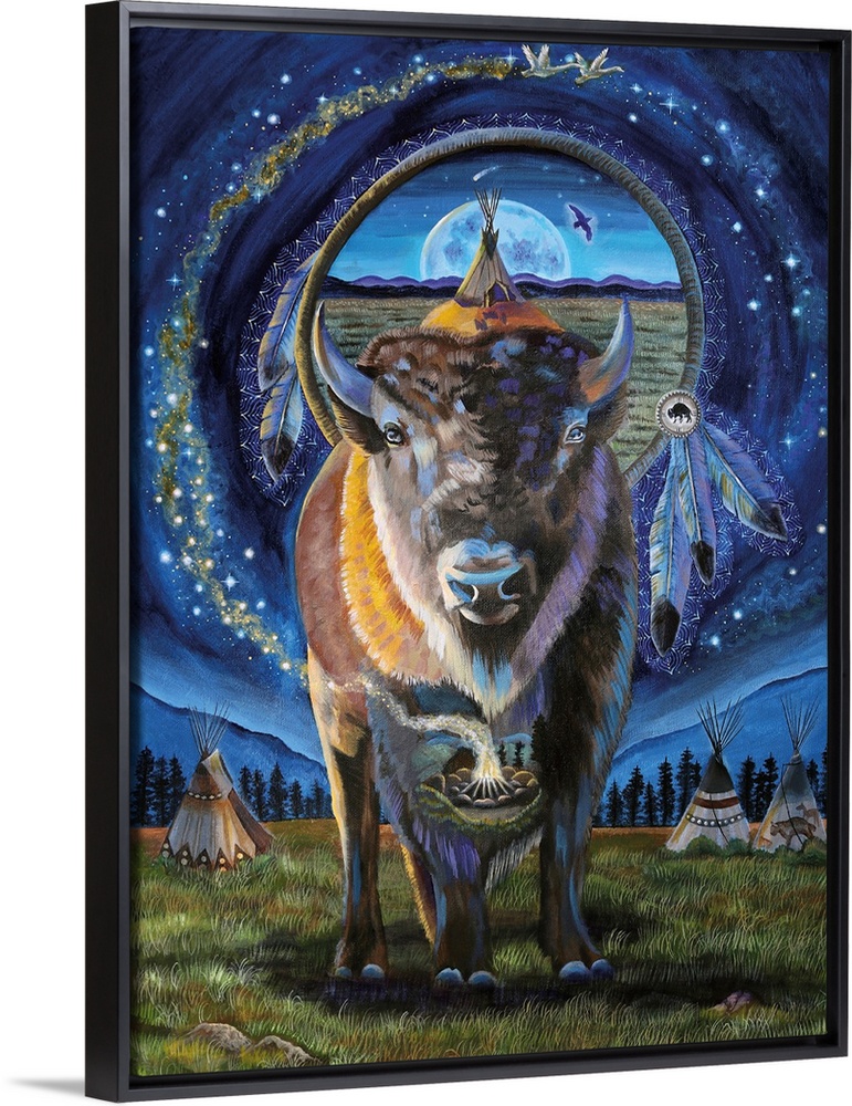 Contemporary Art Painting Wildlife Bison and Buffalo