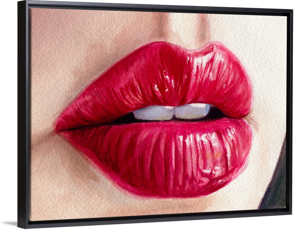 <p>Watercolor painting of close up of a woman's mouth with red lipstick.</p>
