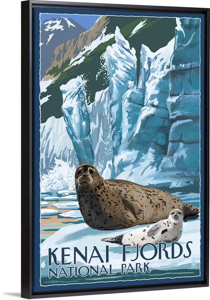 Art Glacier Mountains Lantern Press United States Alaska Seal and Sea Lion
