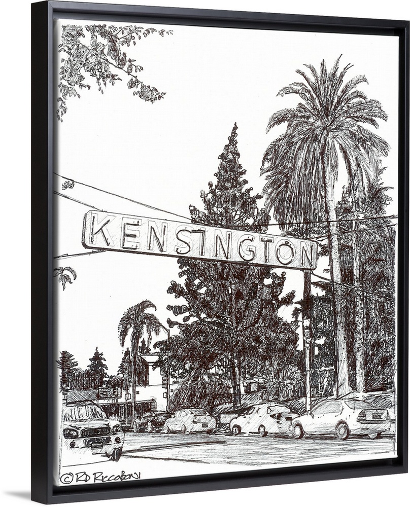 <p>Kensington - San Diego - Pen and Ink drawing of the beloved neighborhood sign by California artist RD Riccoboni.</p>