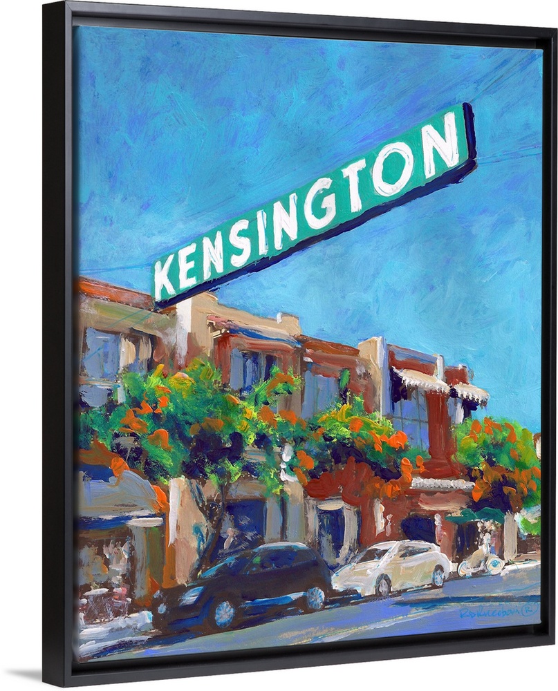 <p>Kensington Sign on Adams Avenue San Diego California. One of the many famous neighborhood neon signs that identify the historic villages in the city.</p>