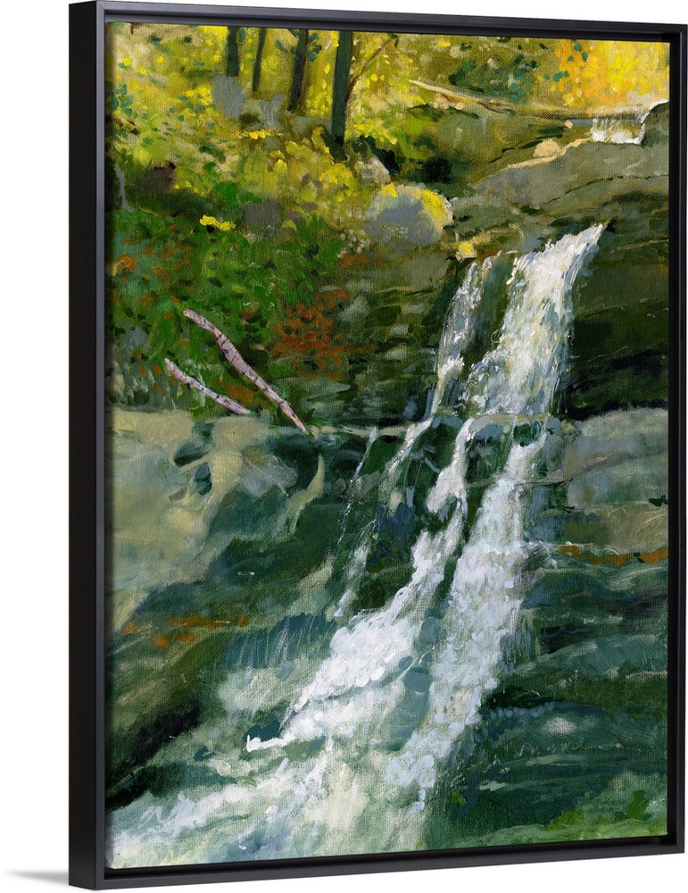 Art Contemporary Art Green Wall Art Landscapes River, Creek and Stream Forest Waterfall Painting