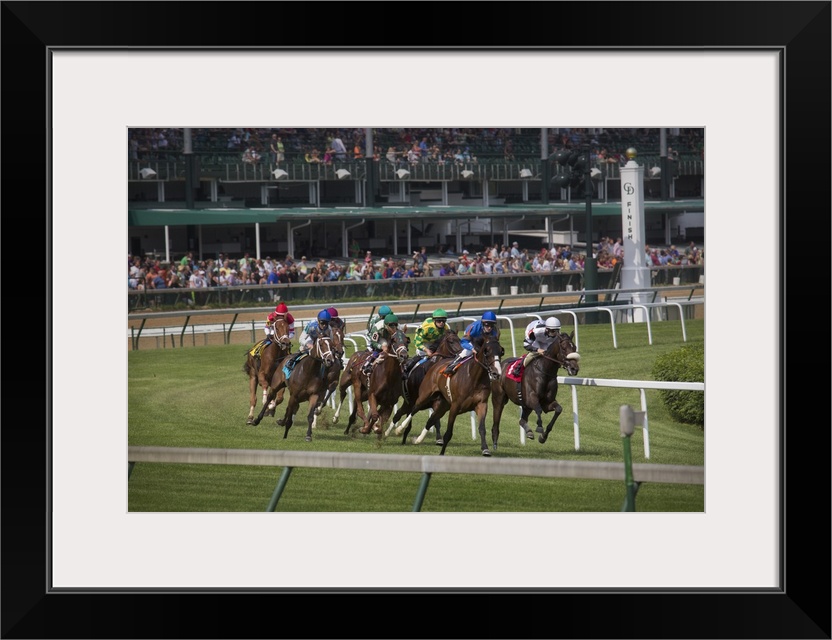 <p>USA, Kentucky, Louisville. Horses racing on turf at Churchill Downs.</p>