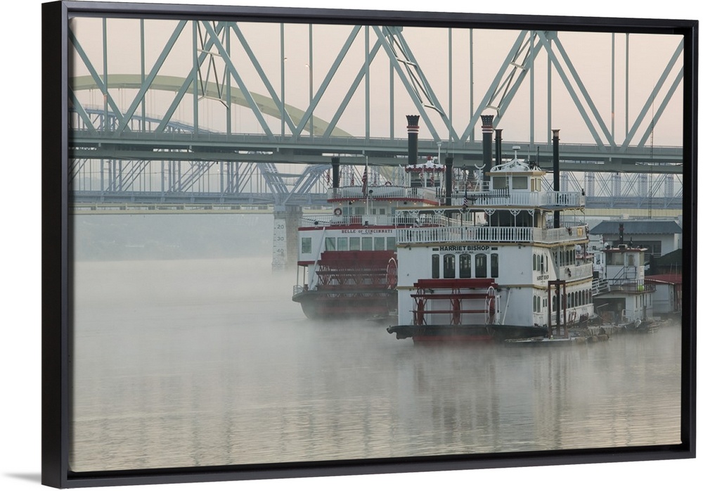 <p>USA-Kentucky-Newport:.Tall Stacks Riverboats/ Riverboat Row on the Ohio River / Dawn</p>