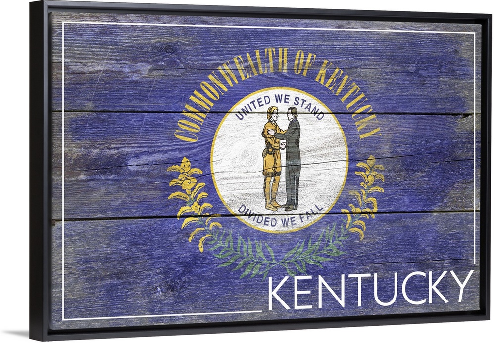 <p>The flag of Kentucky with a weathered wooden board effect.</p>