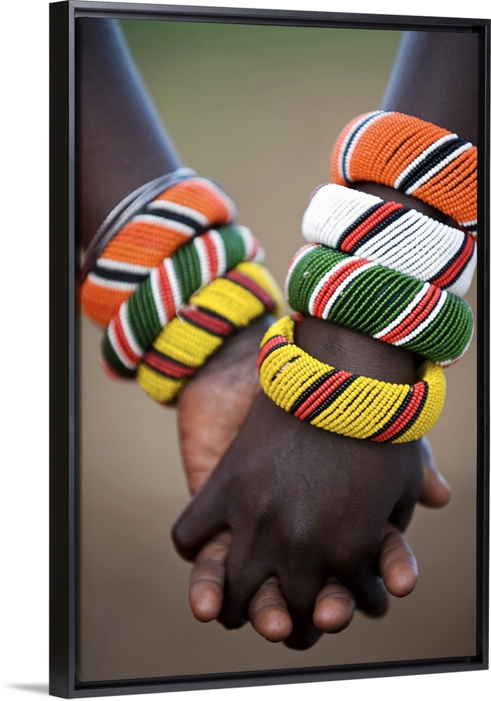 <p>Kenya, Laikipia, Ol Malo. A Samburu boy and girl hold hands at a dance in their local manyatta.</p>