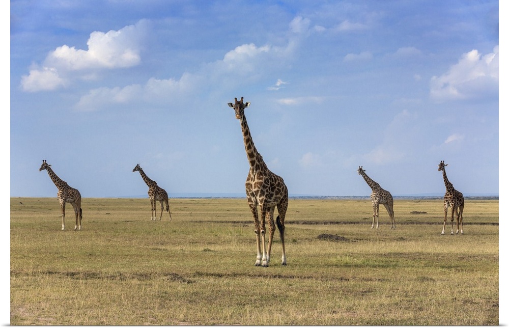 <p>Kenya, Masai Mara, Narok County. Maasai giraffes on the plains of Masai Mara National Reserve.</p>