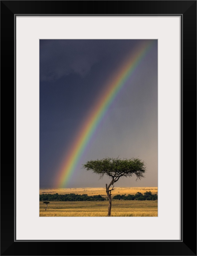 <p>Kenya, Masai Mara, Narok County. A brilliant rainbow in Masai Mara National Reserve.</p>