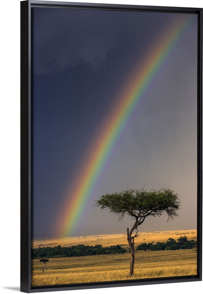 <p>Kenya, Masai Mara, Narok County. A brilliant rainbow in Masai Mara National Reserve.</p>