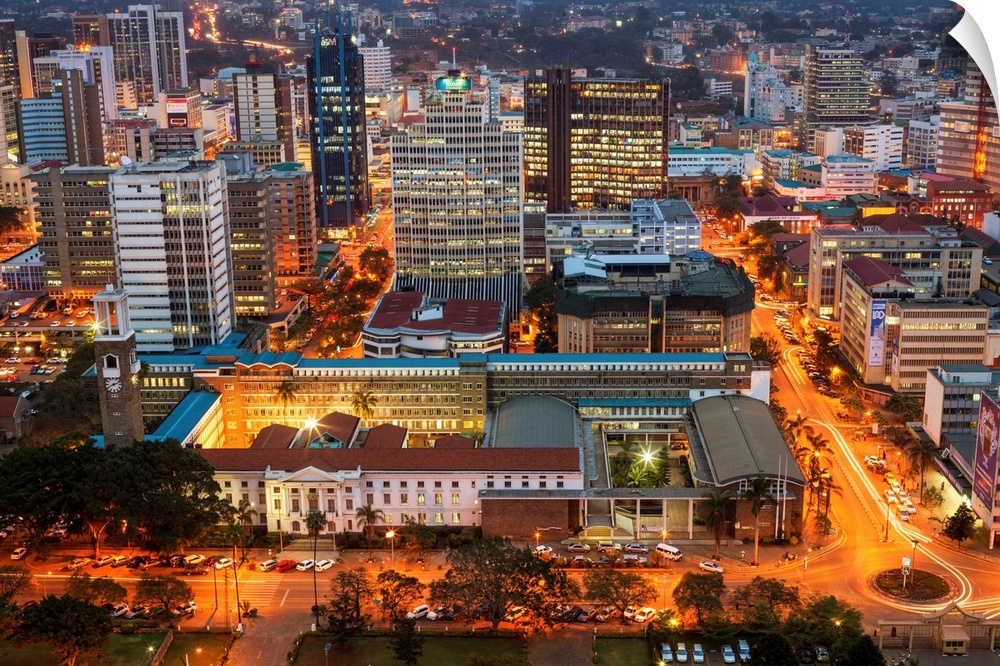 <p>Kenya, Nairobi Area, Nairobi, Downtown from the Kenyatta International Conference Centre (KICC) tower.</p>