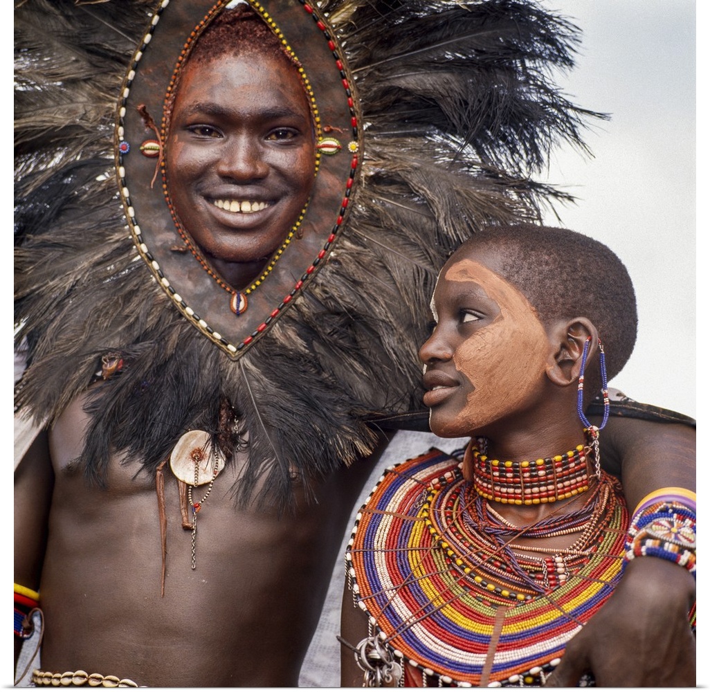 <p>Kenya, Kilgoris County, Oloololo. A Maasai warrior and his girlfriend during an eunoto ceremony.</p>