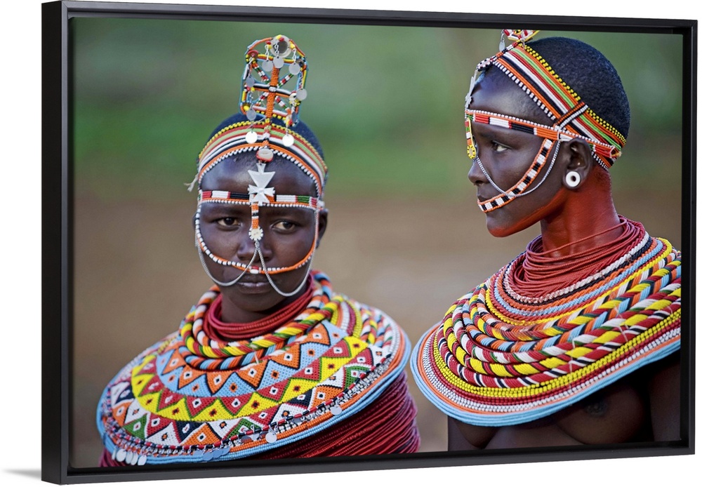 <p>Kenya, Laikipia, Ol Malo. Young Samburu girls dressed in her traditional beaded necklaces and headress at a dance.</p>