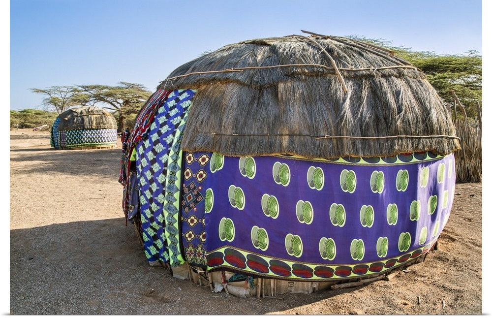 <p>Kenya, Marsabit County, Kalacha. Semi-permanent dome-shaped homes of the Gabbra at Kalacha.</p>