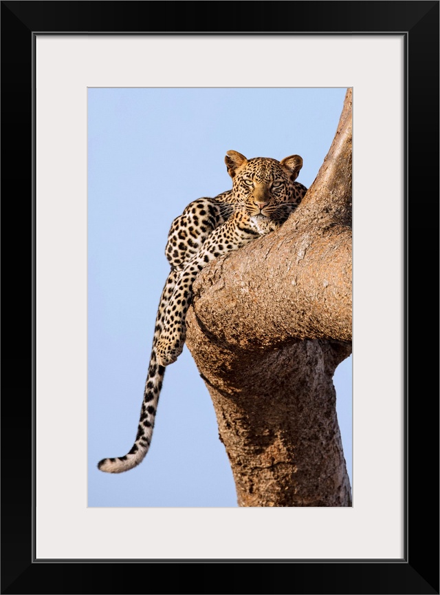 <p>Kenya, Taita-Taveta County, Tsavo East National Park. A Leopard lying on the branch of a tree.</p>
