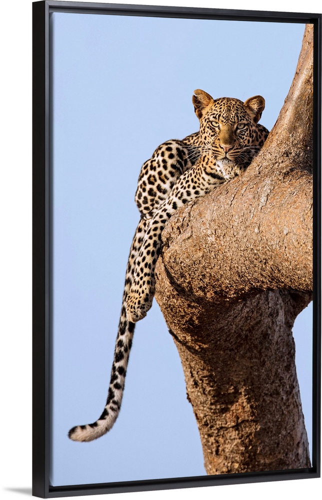 <p>Kenya, Taita-Taveta County, Tsavo East National Park. A Leopard lying on the branch of a tree.</p>