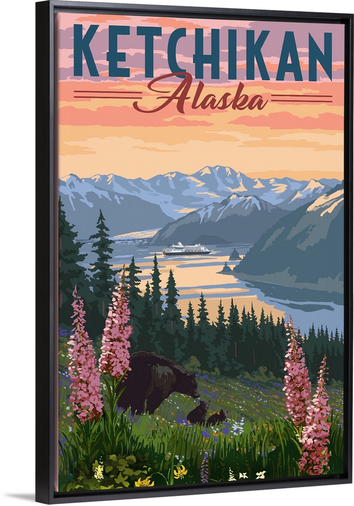 Art Wildflowers Lake Mountains Lantern Press United States Alaska Wildlife