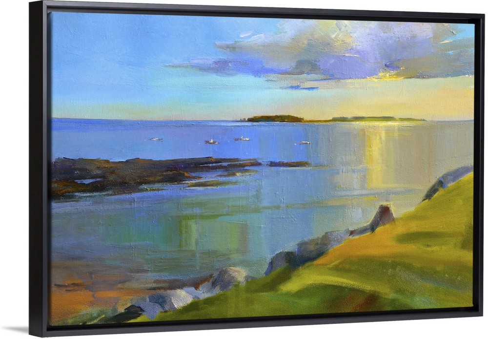 <p>Contemporary landscape painting of a seascape at sunset.</p>