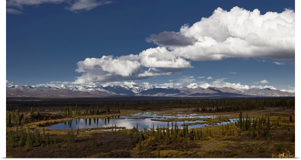 <p>Scenic View Of A Kettle Pond With The Alaska Range In The Background, Interior Alaska</p>