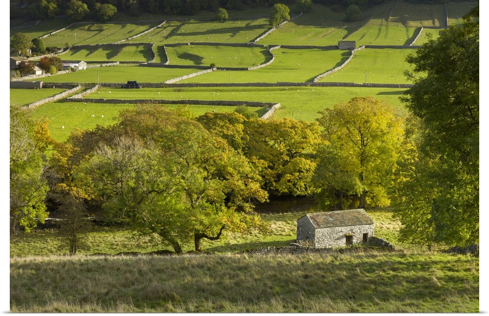 <p>Kettlewell village field sysyem, out barns and dry stone walls, in Wharfedale, The Yorkshire Dales, Yorkshire, England, United Kingdom, Europe</p>