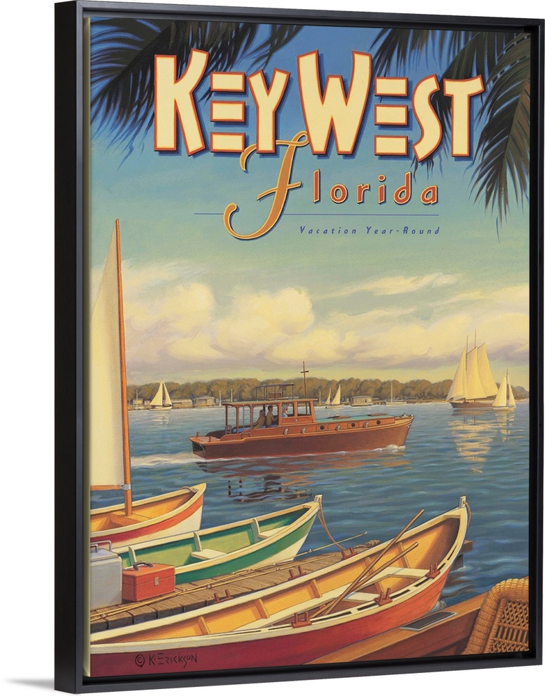 Art Classic Art Decorative Art Kerne Erickson Painting Scenery by Region Florida Florida Keys Transportation Boat Travel Posters Vintage Travel Posters Travel Advertising