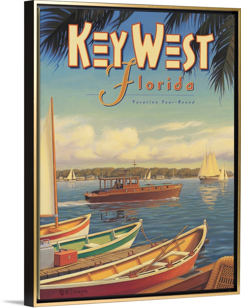 Art Classic Art Decorative Art Kerne Erickson Painting Scenery by Region Florida Florida Keys Transportation Boat Travel Posters Vintage Travel Posters Travel Advertising