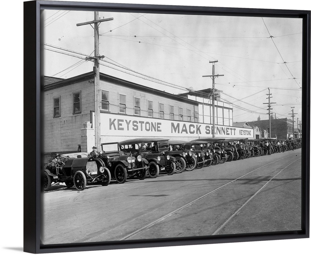 <p>Mack Sennett's film studio in Los Angeles, Calif., with cars ready to depart to shoot a chase sequence.</p>