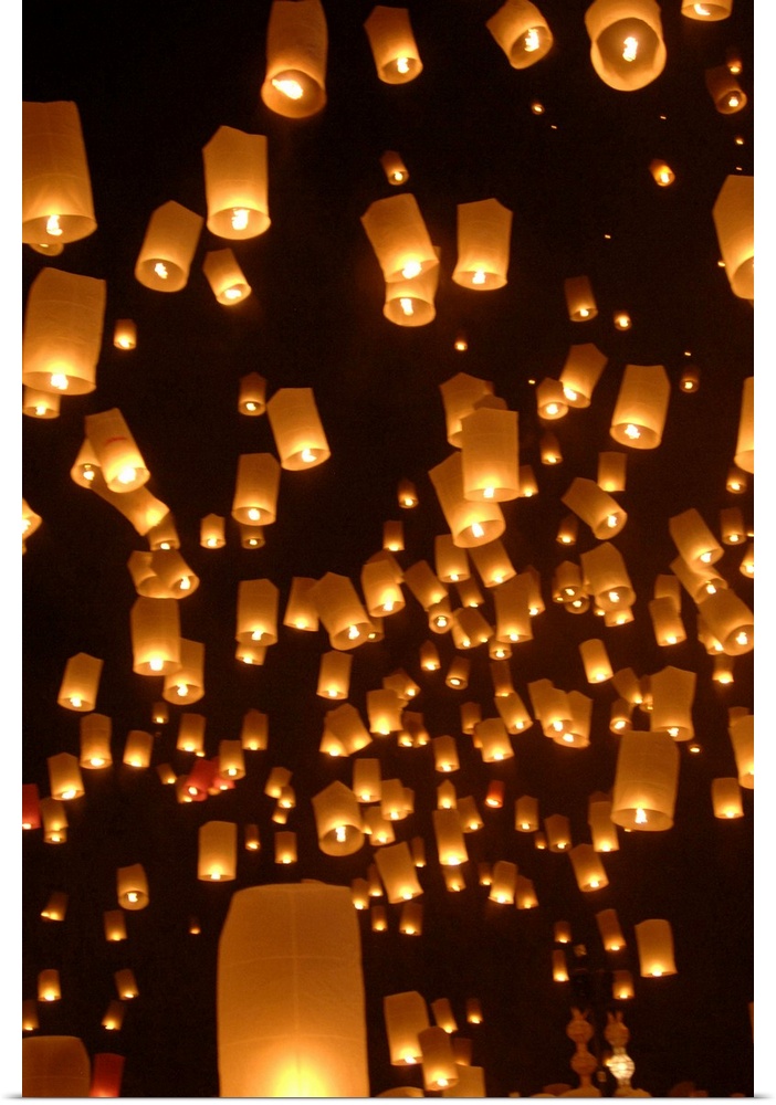 <p>Khom loy lanterns during Loi Krathong festival, at Tudong Kha Satan meditation temple.</p>