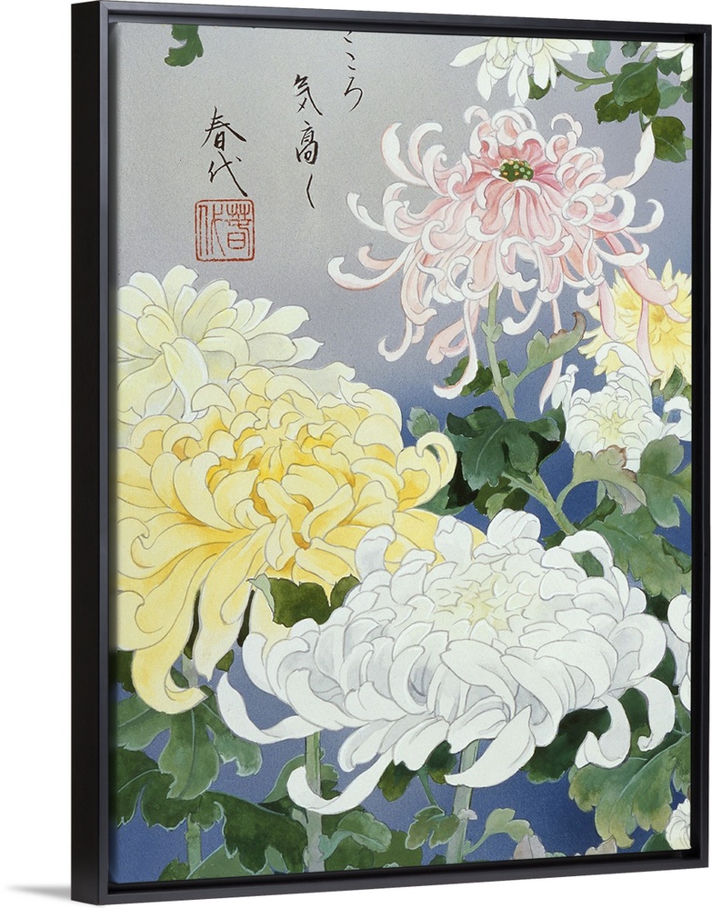 <p>Contemporary colorful and lavish looking Asian artwork. With white and yellow flowers.</p>