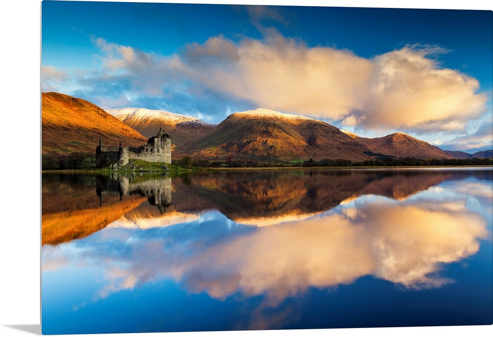 <p>Kilchurne Castle Reflecting In Loch Awe, Argyll And Bute, Scotland</p>