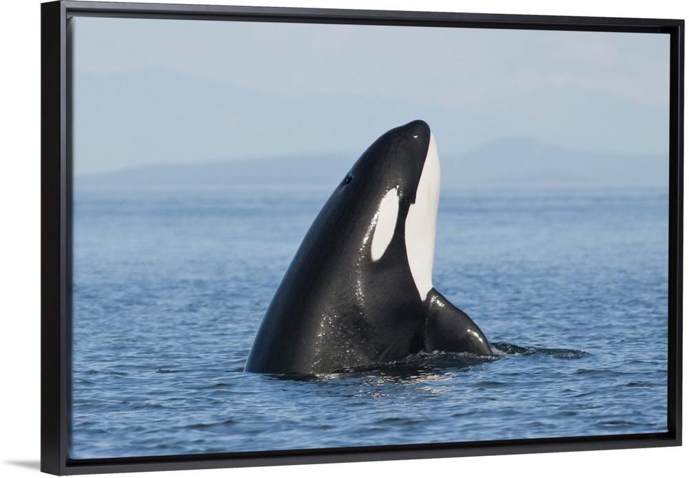 <p>Killer whale in sea with mountains on background.</p>