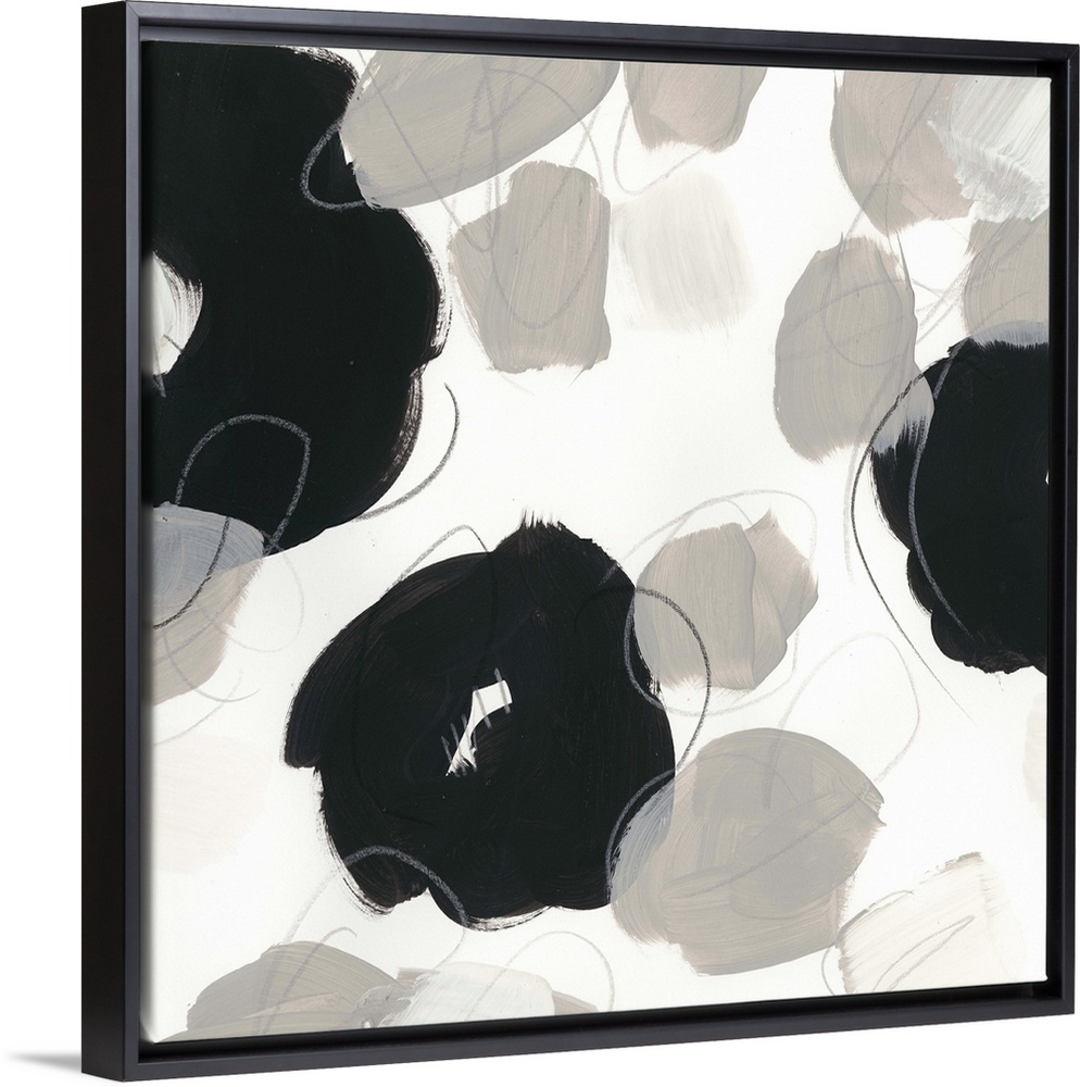 <p>Abstract floral painting with broad black shapes on white and grey.</p>