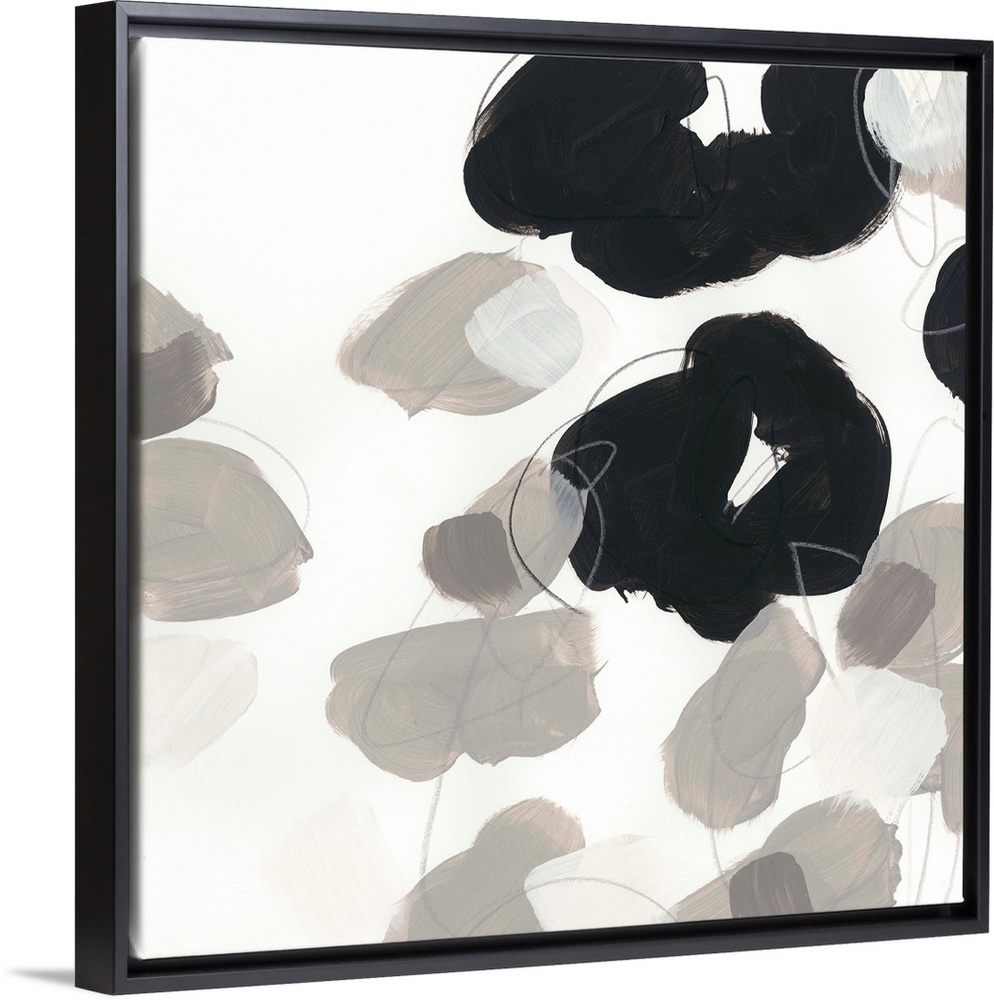 <p>Abstract floral painting with broad black shapes on white and grey.</p>