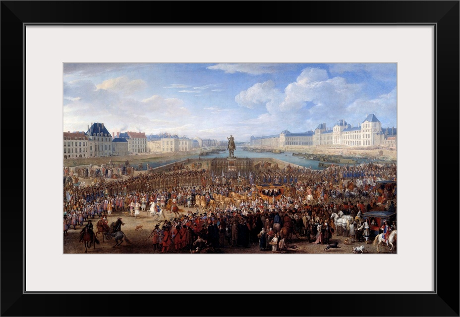 <p>King Louis XIV (1638-1715) in triumphal carriage crossing the Pont Neuf in Paris. Painting by Adam Frans van der Meulen (1632-1690), 17th century. Beaux-Arts Museum, Grenoble, France</p>