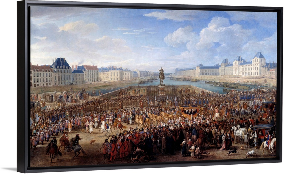 <p>King Louis XIV (1638-1715) in triumphal carriage crossing the Pont Neuf in Paris. Painting by Adam Frans van der Meulen (1632-1690), 17th century. Beaux-Arts Museum, Grenoble, France</p>