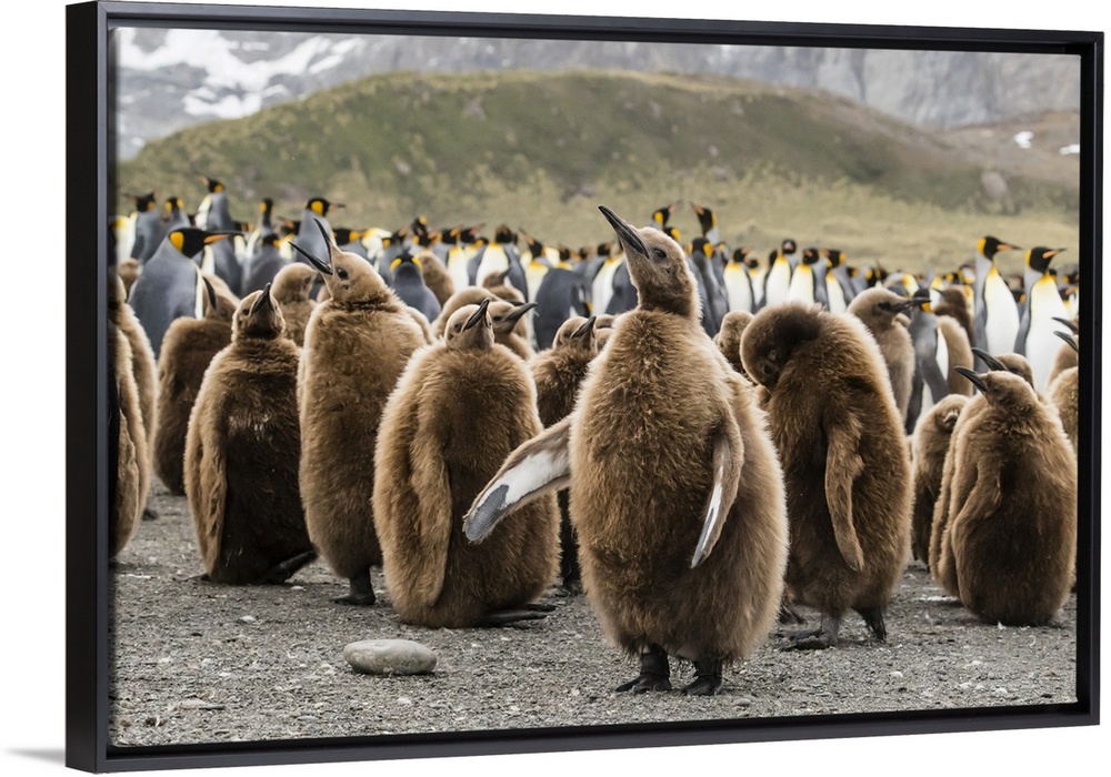 <p>King penguin oakum boy chicks (Aptenodytes patagonicus), molting their down at Gold Harbor, South Georgia Island, Polar Regions</p>