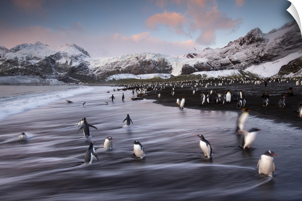 <p>King penguins (Aptenodytes patagonicus) along the shore at Gold Harbour on South Georgia Island, South Georgia Island</p>