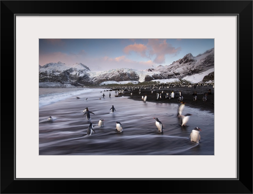 <p>King penguins (Aptenodytes patagonicus) along the shore at Gold Harbour on South Georgia Island, South Georgia Island</p>