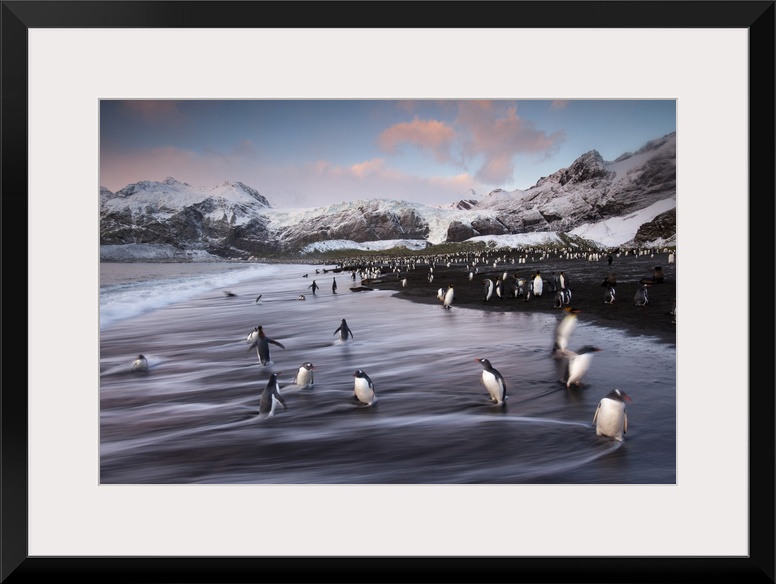 <p>King penguins (Aptenodytes patagonicus) along the shore at Gold Harbour on South Georgia Island, South Georgia Island</p>