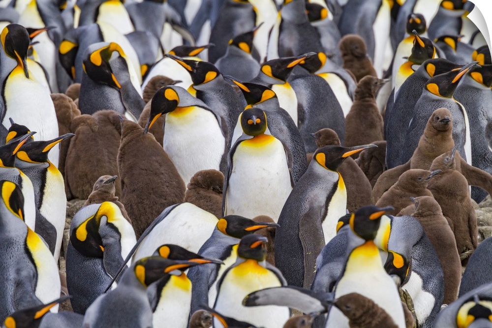 <p>King penguins (Aptenodytes patagonicus) at breeding and nesting colony at Salisbury Plain in the Bay of Isles, South Georgia, Polar Regions</p>