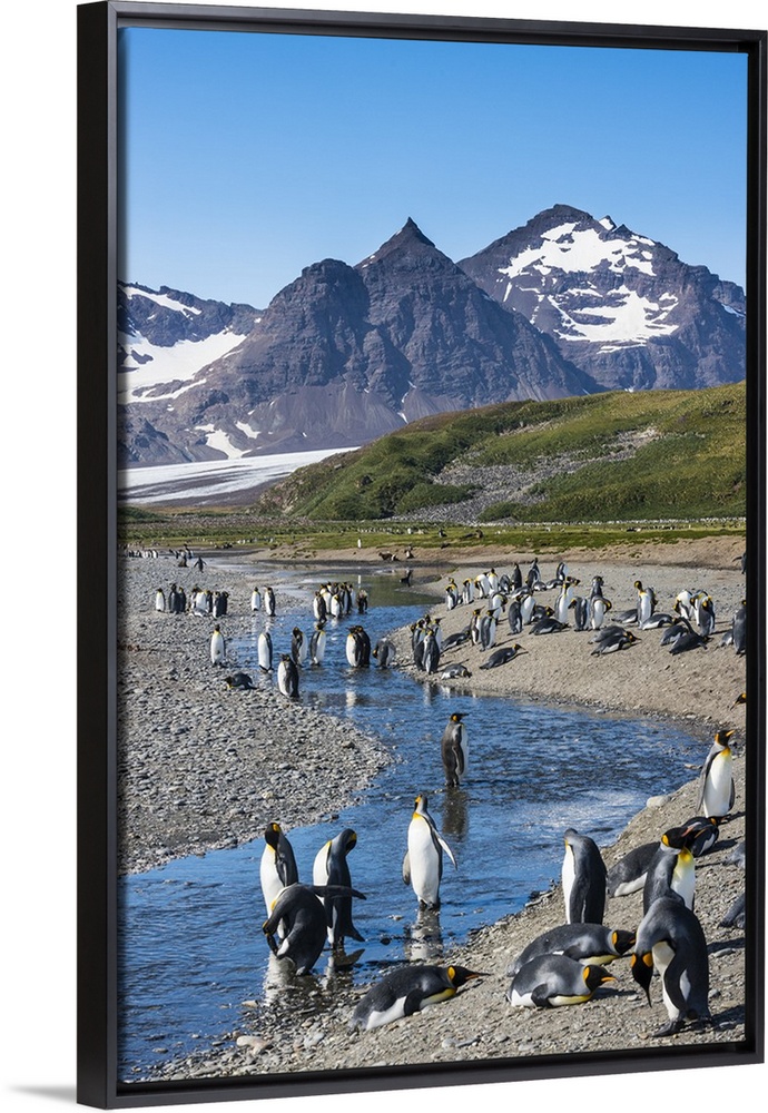 <p>King penguins (Aptenodytes patagonicus) in beautiful scenery, Salisbury Plain, South Georgia, Antarctica, Polar Regions</p>