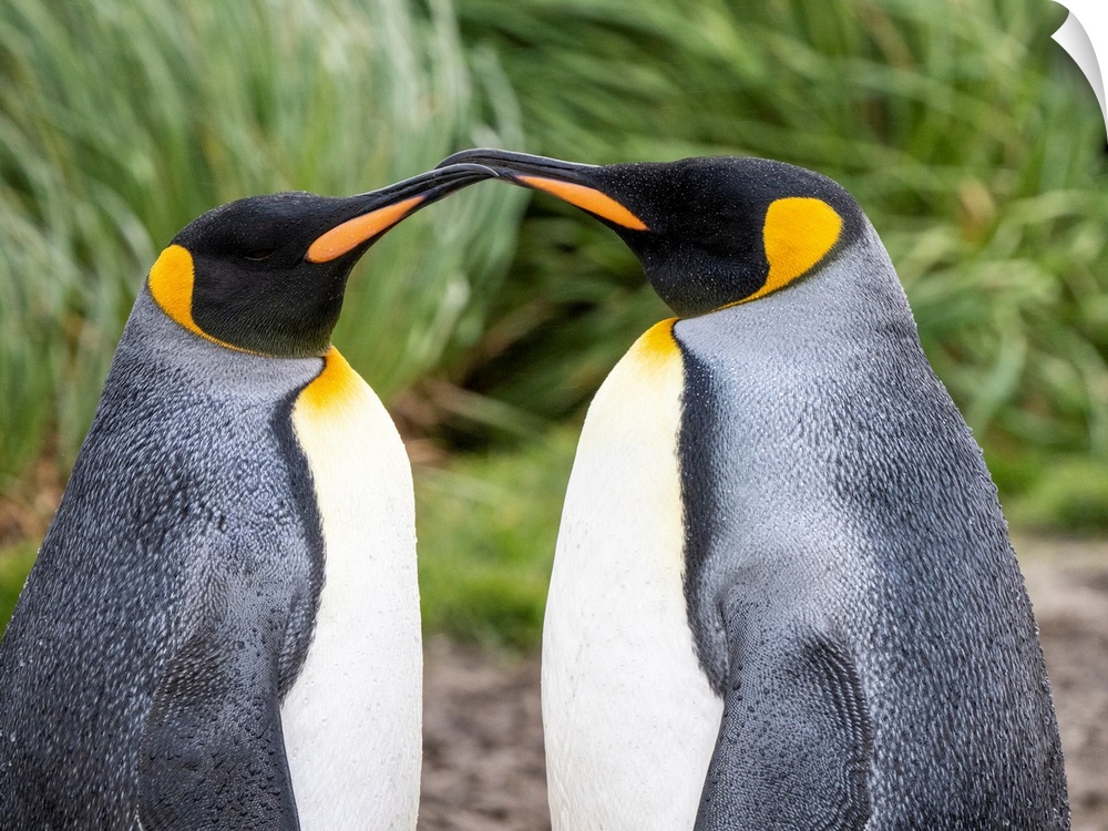 <p>King penguins (Aptenodytes patagonicus) preening themselves at Salisbury Plain, South Georgia, South Atlantic, Polar Regions</p>
