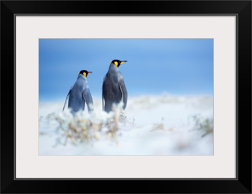 <p>King penguins standing in a sand storm, Volunteer Point, East Falkland, Falkland Islands, .</p>