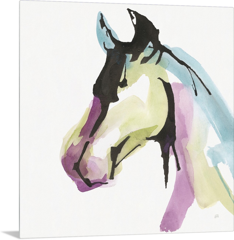 Art Decorative Art Green Wall Art Painting Chris Paschke Watercolor Wildlife Horse