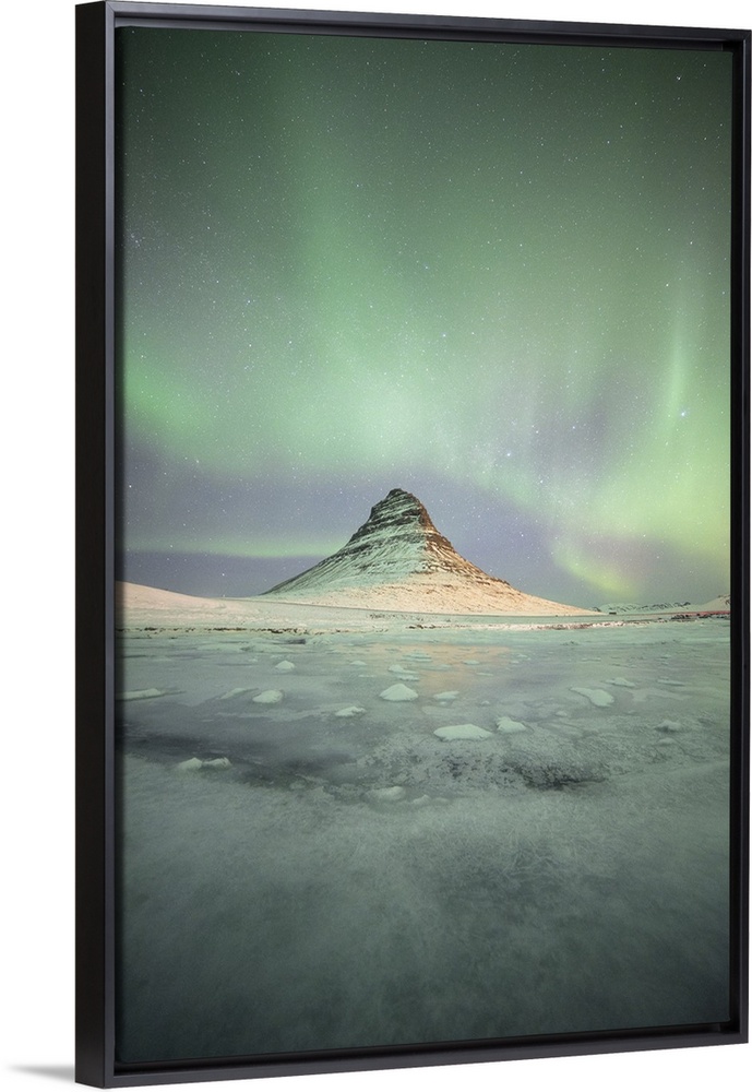 <p>Stunning northern lights in the sky illuminating Kirkjufell in Iceland at night.</p>