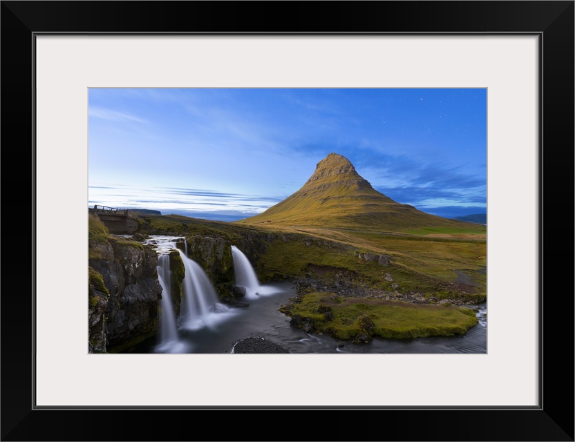 <p>Kirkjufell Mountain and Kirkjufoss Waterfall at dusk, Snaefellsnes Peninsula, Iceland, Polar Regions</p>